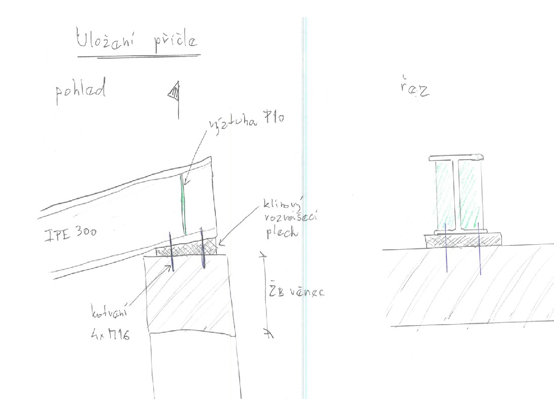 osobně si myslím, že nějaké dvě kotvy D16 ve spodní plotně IPE zajistí v podstatě jen posunutí aby to nespadlo..