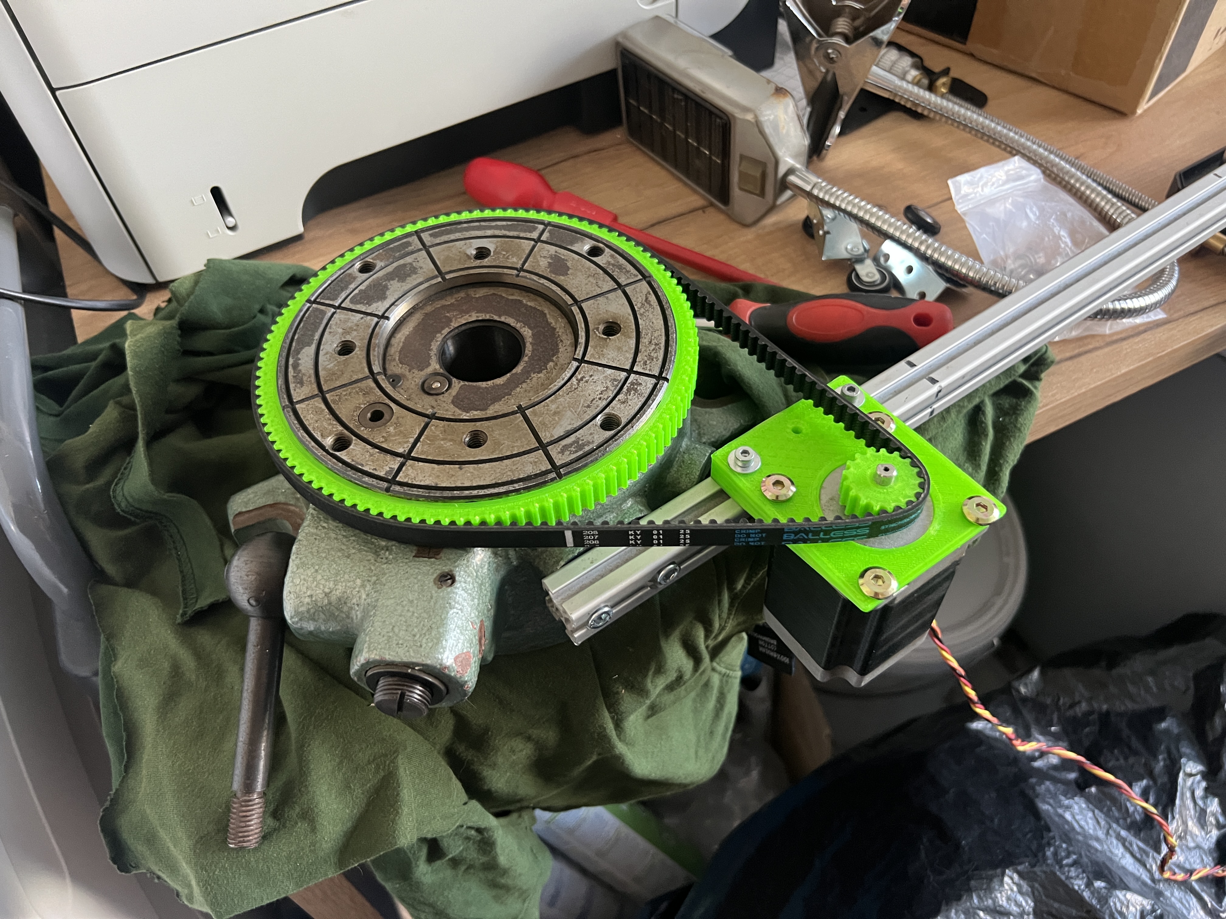 Skusim spravit fotky z nastaveni. Ten pomer momentov je asi uleteny, to je pravda, hriadel ma 2-3kg na vacsich priemeroch, je to vytuneny pracovny vretennik z brusky s mk5 dutinou. Autotuning ani nezbehne na menici, v manuale pisu ze sa to moze stavat. Mozno ale je to sekundarny problem, skusim to cele este bez remena...