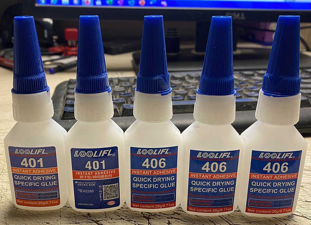 Loctite 401 i Loctite 406 stojí v průměru 300 korun za 20 ml. Lepidla na obrázku stojí dohromady 220 korun