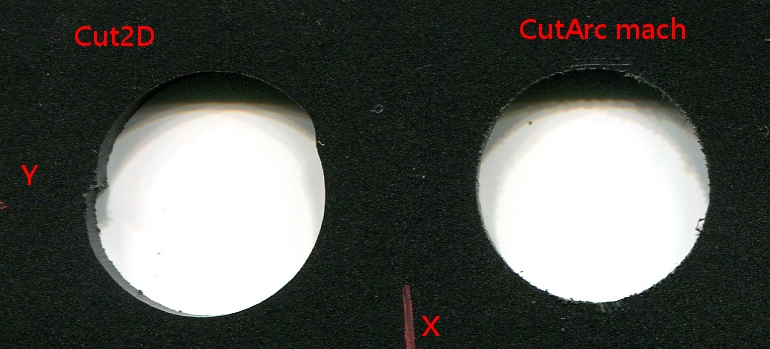 Pokud kód vygeneruji v Mach 3 - Wizards - Cut Arc je vyfrézovaný otvor perfektní.