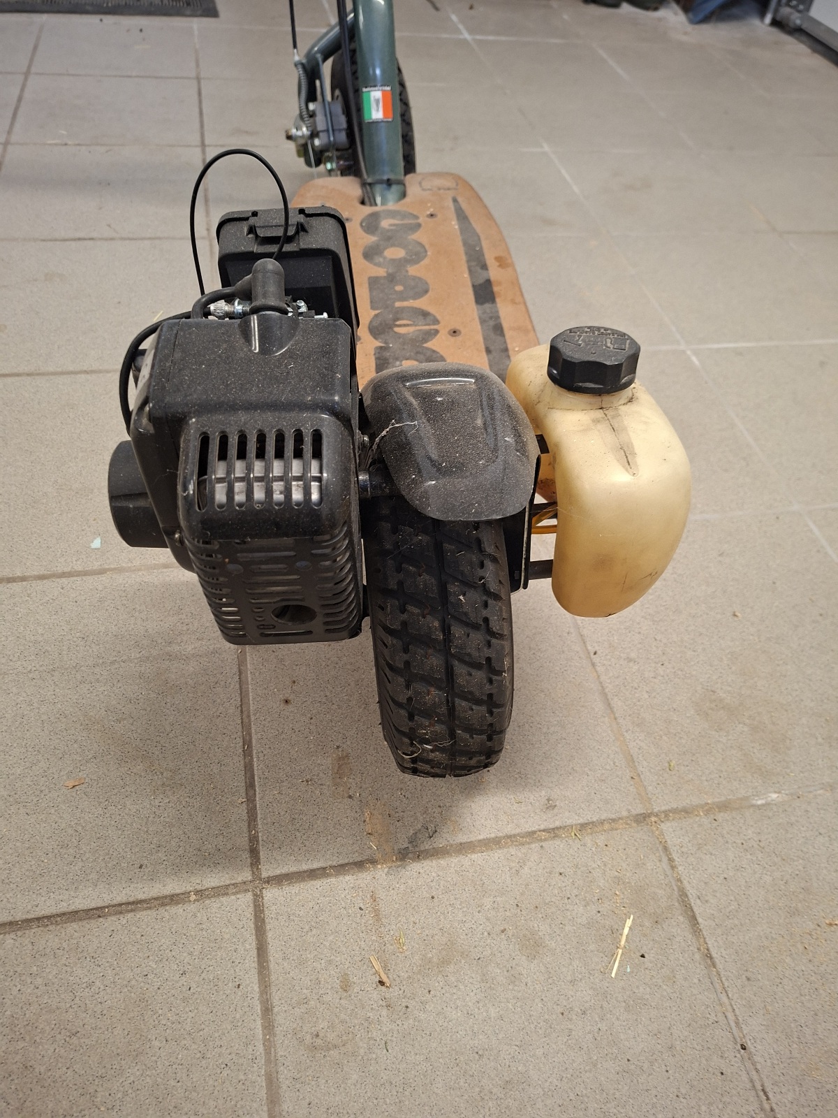 Posunu dal motorovou kolobezku. Motor jako v krovinaku, startuje se tahem. Asi 2 roky stojí, takze to prodavam jako nepojizdne. Pred tím jsem měnil palivové hadičky, těsnění a karburátor. Byl to takový maly nezmar, s kterym jsem najezdil neco kilometru po okolnich vesnicich.. Cenu si představuji 5000 Kč. Vzhledem k rozměrům to vidím na osobni odběr. Muzu přiblížit do Prahy. Nebo na sraz