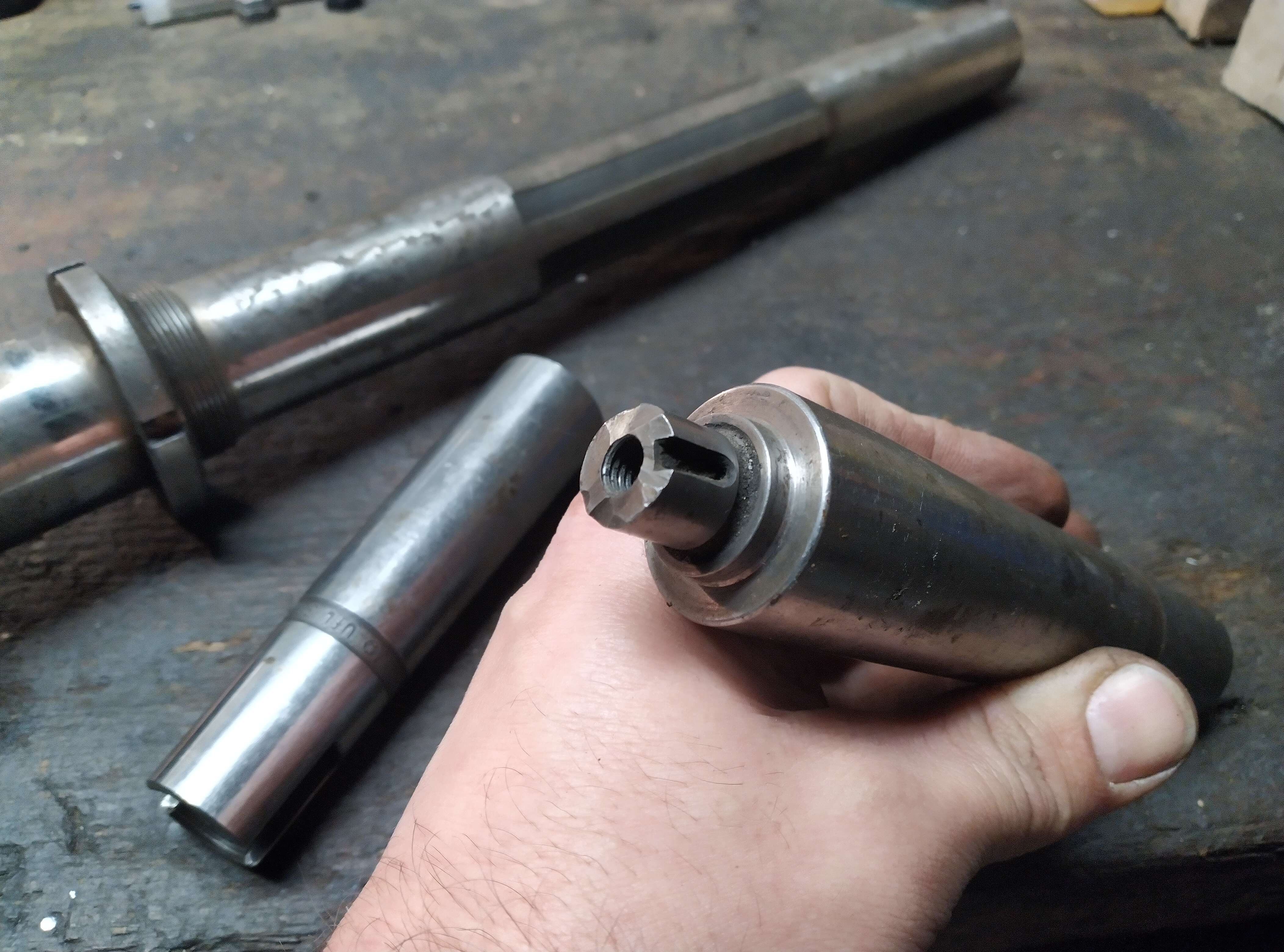 Nabízím vřeteno z pro mě neznámé, zřejmě ČS frézky s dutinou Me32. K vřetenu mám ještě poškozený trn Me32x16x28 a redukci Me32/18. Vyměním za trny Mk3, Mk4 nebo klínovací nářadí Mk4 do horizontky. Nebo něco nabídněte.