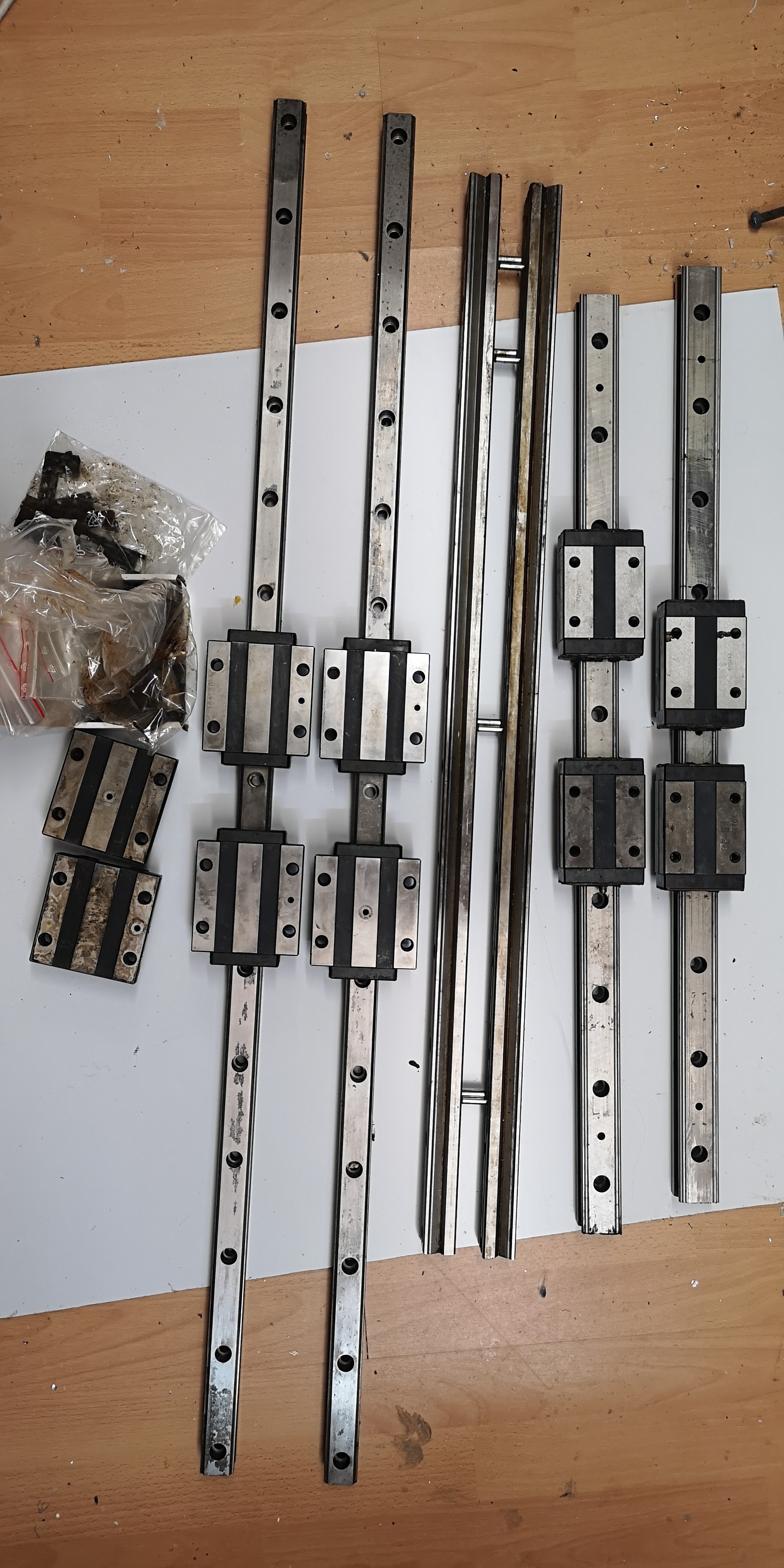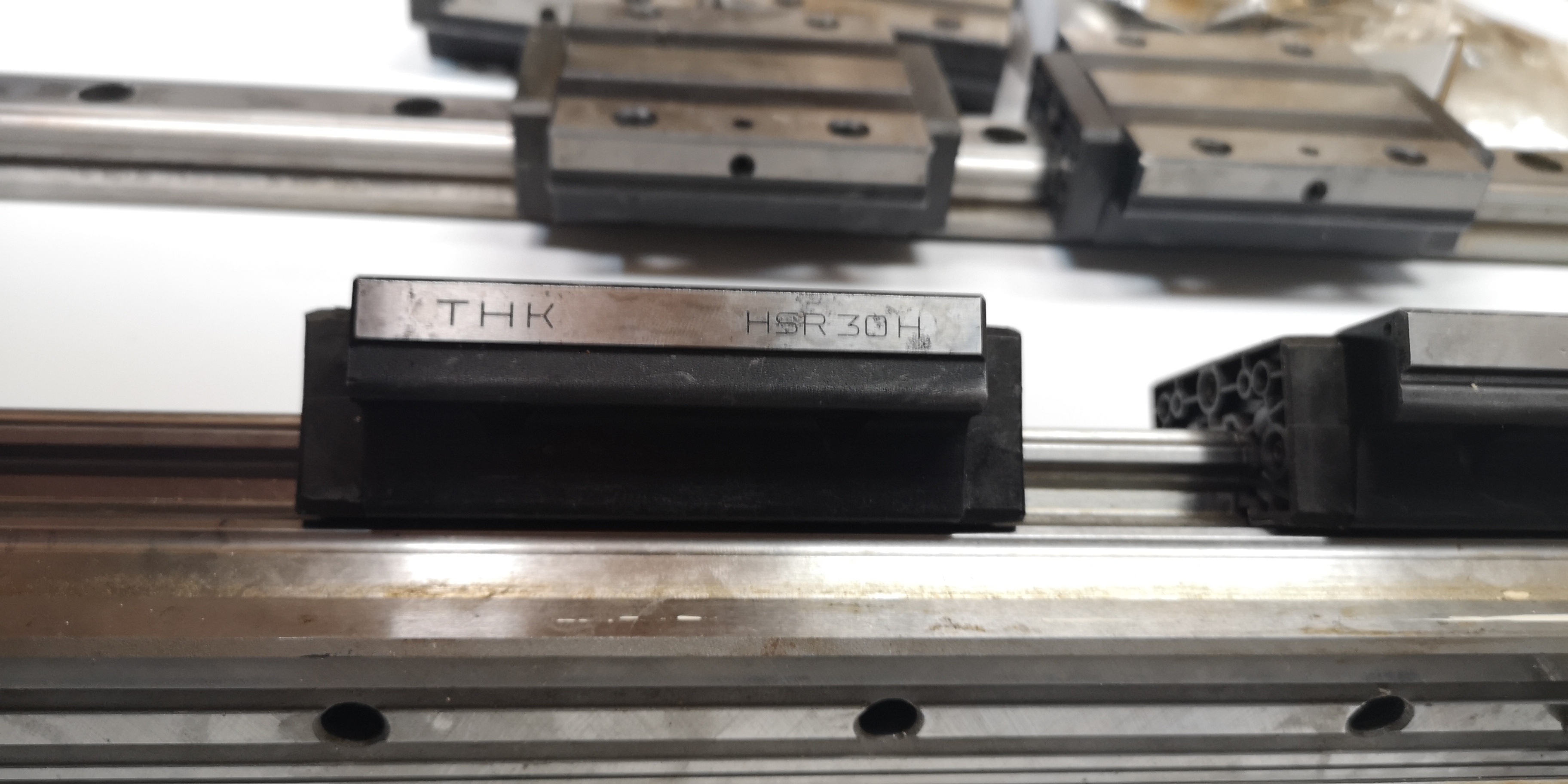délka 1160mm + 4x vozík THK HSR30H (komplet vyčištěno, namazáno HIWIN G03, demontovány stěráky ty by chtělo nové)