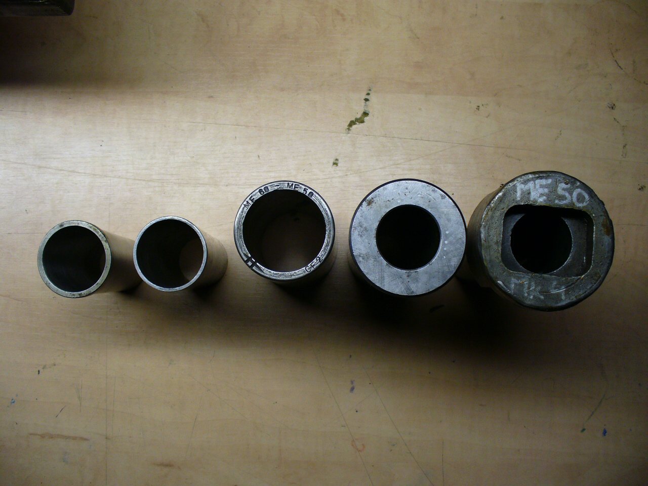 Jo brusičské redukce se dají normálně sehnat(první čtyři zleva na fotce) .První dvě zleva jsou Mk5/ME40 což by sílou stěny odpovídalo té Krutorově ME50/Mk5.