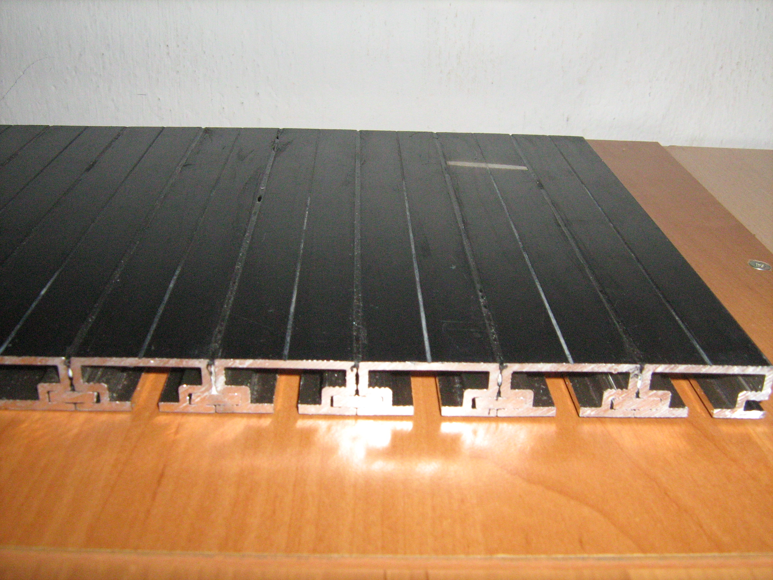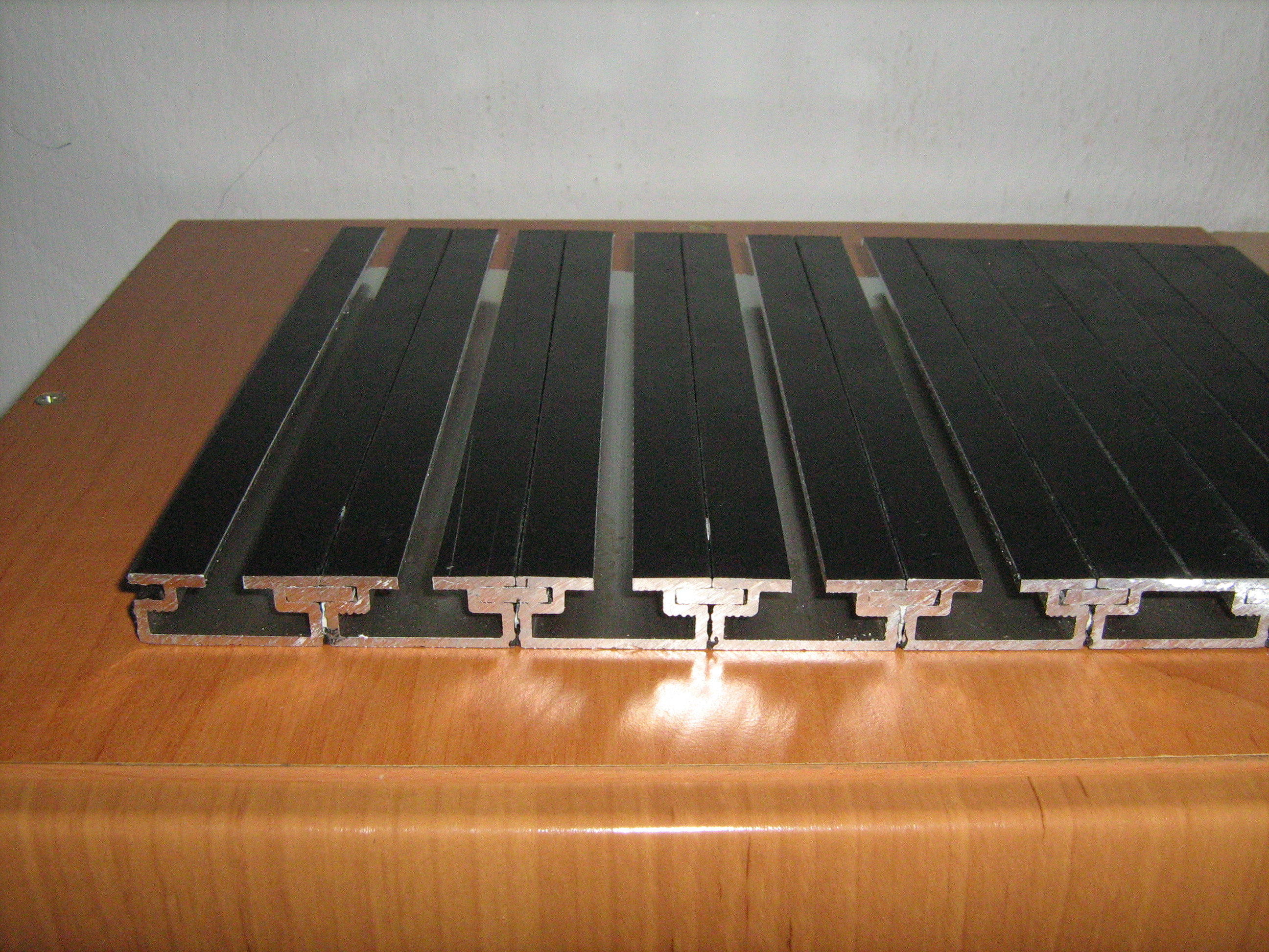 Vypadá to slušně je to z hliníkových profilů vyška je 15 mm, drážky jsou s roztečí 35 mm a