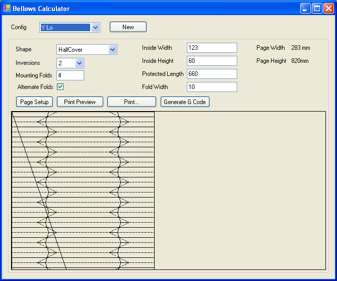 Myslím že by se to mohlo někomu hodit. Programek není dokončený, počítá pouze klasickou konstrukci měchu a tlačítko G-Code nefunguje, dle slov autora mělo vygenerovat kod pro vyřezačku, ale nedopsal to. Nicméně i vytištěná předloha je lepší než drátem do oka.