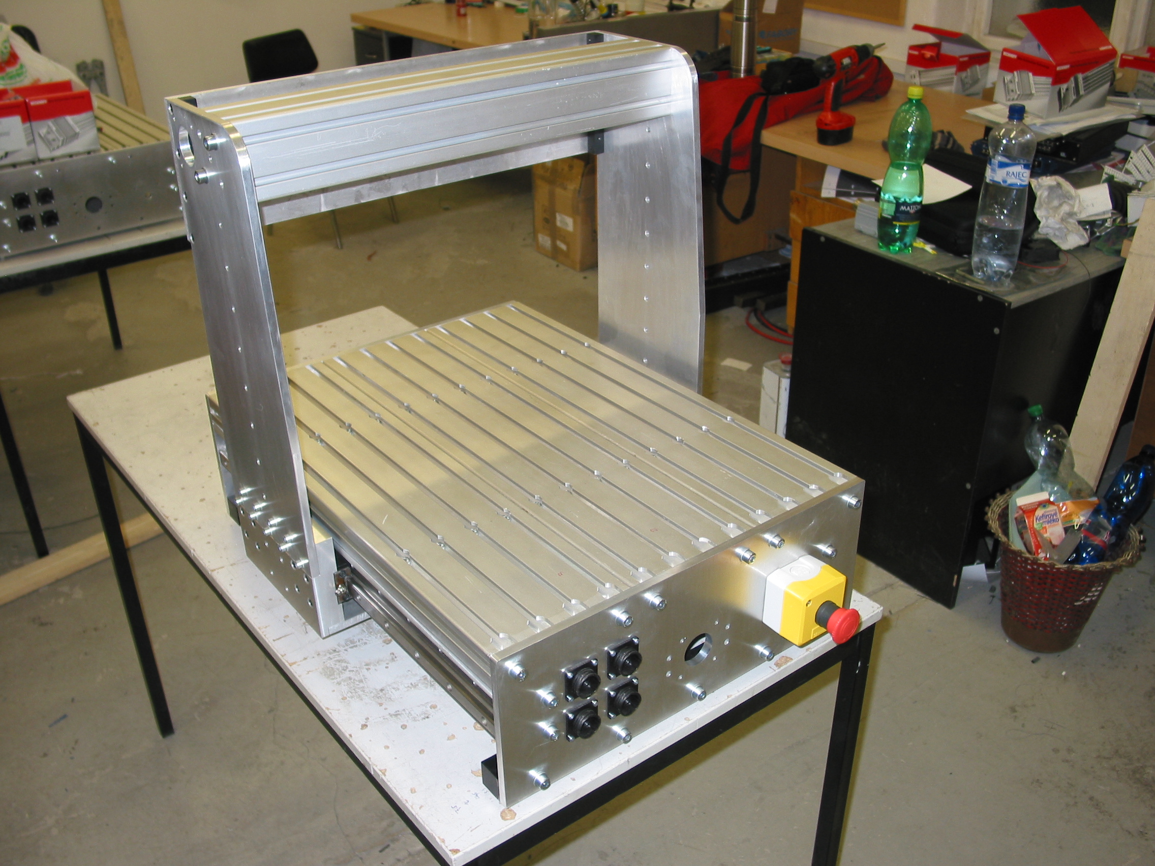 Ahoj vsem. K vašim dotazům. Lineární vedení je uloženo (zafrézováno) do ocelového plátu o rozměrech 70x20mm a toto je přišroubováno na hliníkový profil 80x40. Cele je to docela masivni a snad se to nebude moc kroutit. Každopádne to chceme na příležitostní domácí obrábění. Temer vsechen material je tloustky 10mm EN AW 5083. Ty silnejsi dily maji 30mm. Linearny vedeni na X mame bohužel z cenovych duvodu použité, na ose Y a Z se povedlo koupit nové. Motory máme klasické krokové, které jsme vymenily za nejake starší co jsme měli a na druhe straně kuličkového šroubu máme inkrementální snímače OMRON, ktere jsou jako nové, ale také jsme je vymontovali z jednoho zařízení. Jinak cenu ridicich karet nevim, protoze jsme je dostali jako protislužbu od dodavatele. Veškere profily jsme nakoupily jako použitý odpad za cenu kolem 60kč/kg, proto jsme se rozhodli je maximálně využít. Jinak jestli máte jakékoli dotazi tak rád odpovím ale nejsme moc strojaři, jsme spíše elektrikáři
