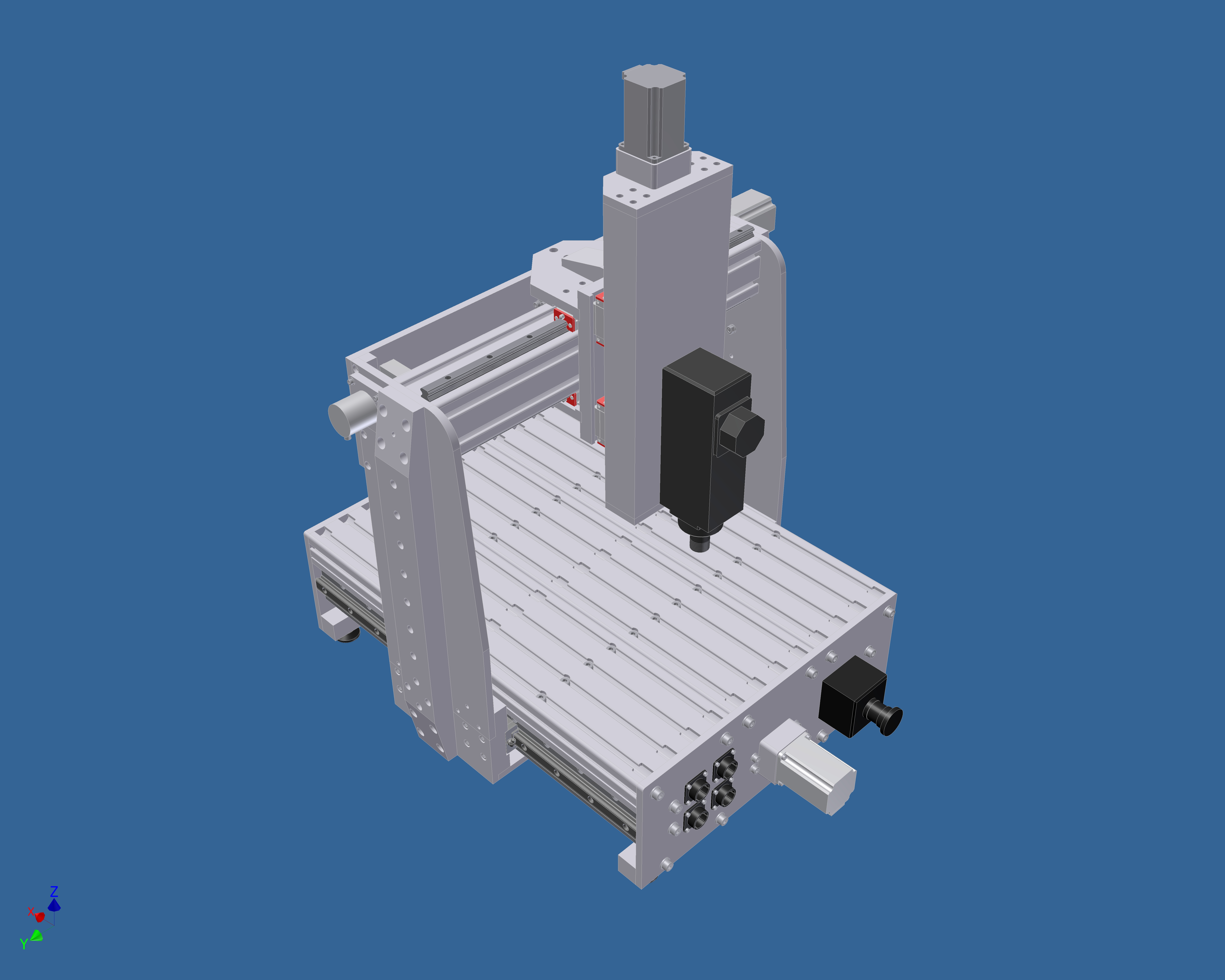 Ahoj všem. Již dlouhou dobu s kolegou studujeme toto fórum se snahou o návrh malé CNC frézky pro obrábění a vrtání plošných spojů, překližky a duralu. Návrh je hotový a nyní stavíme. Rozjezdy jsou x=638mm THK SR20W, y=533mm HIWIN HGH15CAZ0C z=400mm HIWIN HGH15CAZ0C. Krokové motory SANYO DENKI Nema 23 cca 1.6Nm řízené PLC a napájené 45V. Poloha je odměrována IRC snímači a vyhodnocována kartou v PLC. IRC mají I kanál, který bude sloužit spolu se spínačem k přesnému najetí na nulu. Kuličkové šrouby 16/5 na všech osách. V současnosti máme složenu teméř celou osu X, ostatní díly jsou ve výrobě. Ještě musíme oproti modelu domyslet plynovou vzperu, protože hmotnost osy Z bude kolem 15-20Kg. Jako vřeteno uvažujeme atase ve verzi 750W. Co vy na to ?