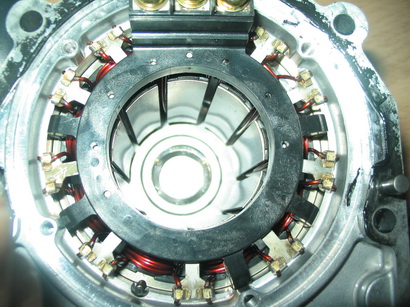 Tady jsou nejake fotky te elektroniky a otevreneho motoru. Na rotoru je 6 segmentu, na statoru je jich 9. Elektroniku k behu cerpadla nutne nepotrebuji, misto ni by se dal nabastlit nejaky ten budic, nebo jak se to jmenuje. Jeste k te aplikaci: cerpadlo dava tlak 100 bar, prutok neznam, ale servocerpadla z osobaku se na hydrauliku malotraktoru bezne pouzivaji. Jeste jsem zapomel napsat, ze jsem se pokusel zmerit, ktery vyvod je spojeny s kterym a vsechny civky? statoru mi pipaji, jako ze je tam zkrat. Stejne tak vsechny tri srouby, kazdy s kazdym, jsou vodive spojeny. Snad to k necemu bude.