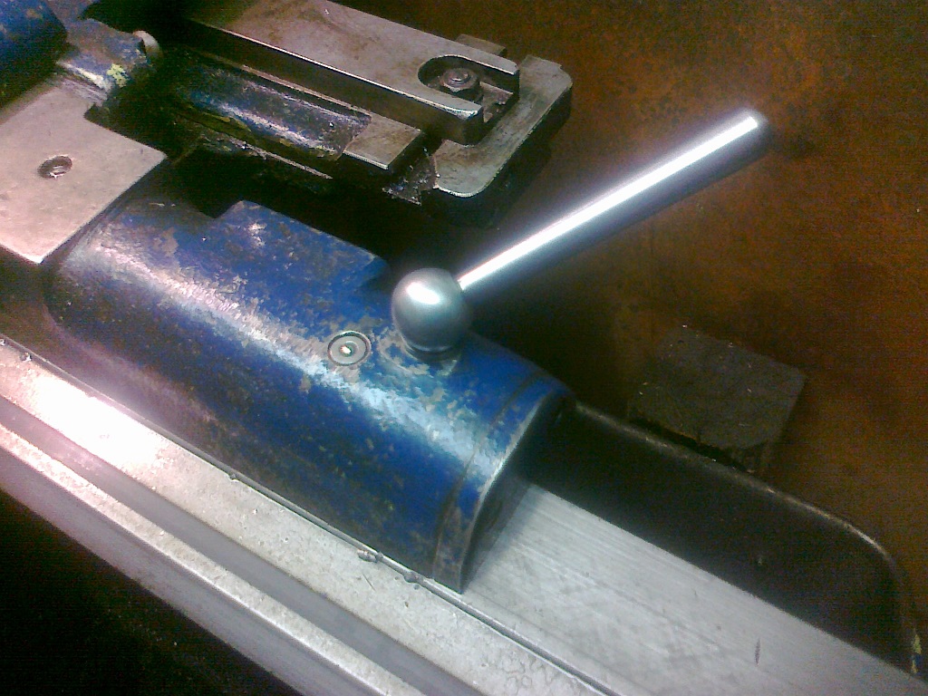 a tak jsem vyrobil kámen zapevnění suportu (když se napřesno zarovnávají čelní plochy. Originál mi chybí). Bohužel jsem při odměřování hloubkoměrem posuvky špatně matematicky odečetl vzdálenost záviru od hrany (od vrchu tyčky průměr 10mm) 14mm - 5mm (polovina průměru 10mm), myslel, že to je 8mm. Prozradím to, je to 9mm