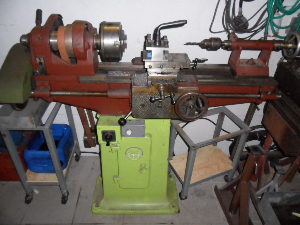 Myslím, že už mám s podobnejma "šrotama" bohatou zkušenost a můžu tě ujistit, že když na něm trochu zamakáš, tak bude na domácí soustružení makat parádně. Dokonce je mi i docela sympatickej, protože už má převodovku a posuvovou tyč ( né jenom šroub).To , že je od humusu a i lehký koroze nic neznamená. Škoda, že chybí můstek ale pracovat půjde i bez něj. Případně uděláš o něco delší přírubu na sklíčidlo. Koně nějakýho starýho seženeš a buď ho upravíš nebo uděláš mezikus na dosedací plochu. Hlavně aby byl komplet vřeteník a suport. Kola nějaký veliký máš a menší a malý dokoupíš jako polotovary. Nemusíš mít všechny co udává tabulka, ale musíš si napočítat vlastní tabulku. Hlavně pozor při demontáži, všechno pečlivě uchovávat do krabiček, nic nevyhazovat a neztrácet a když něco nejde hladce rozebrat, tak se nejdřív několikrát zamyslet než použít sílu. Pro inspiraci posílám pár fotek svého soustruhu před a po oživení. Pracuju na něm běžně a myslim, že na ty roky i i slušný kusy železa s úběrama za který se určitě nemusim stydět. Tyhle starý typy mají obrovskou výhodu v jednoduchosti na rozborku a sborku a stěhovatelnosti. Já bych třeba soustruh novějšího typu co se velikosti týče do dílny dostal, ale dílna je tak blbě umístěná, že si jeho nastěhování nedovedu představit. Držim palce :D
