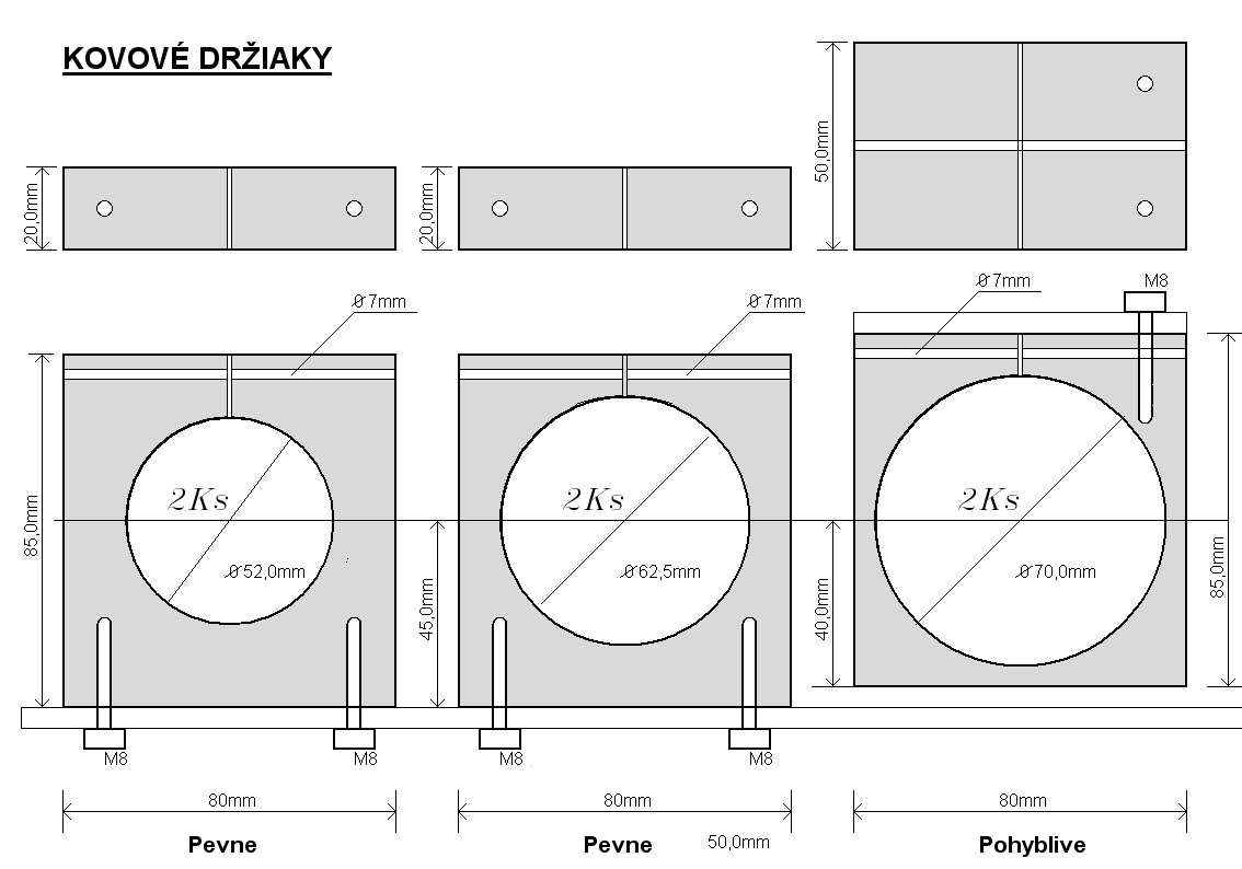 85mm x 80mm x 50mm 2ks dnu diera priemer 70mm zhora 2x diera vedla seba zavit na M8 križom diera 7 na stiahnutie