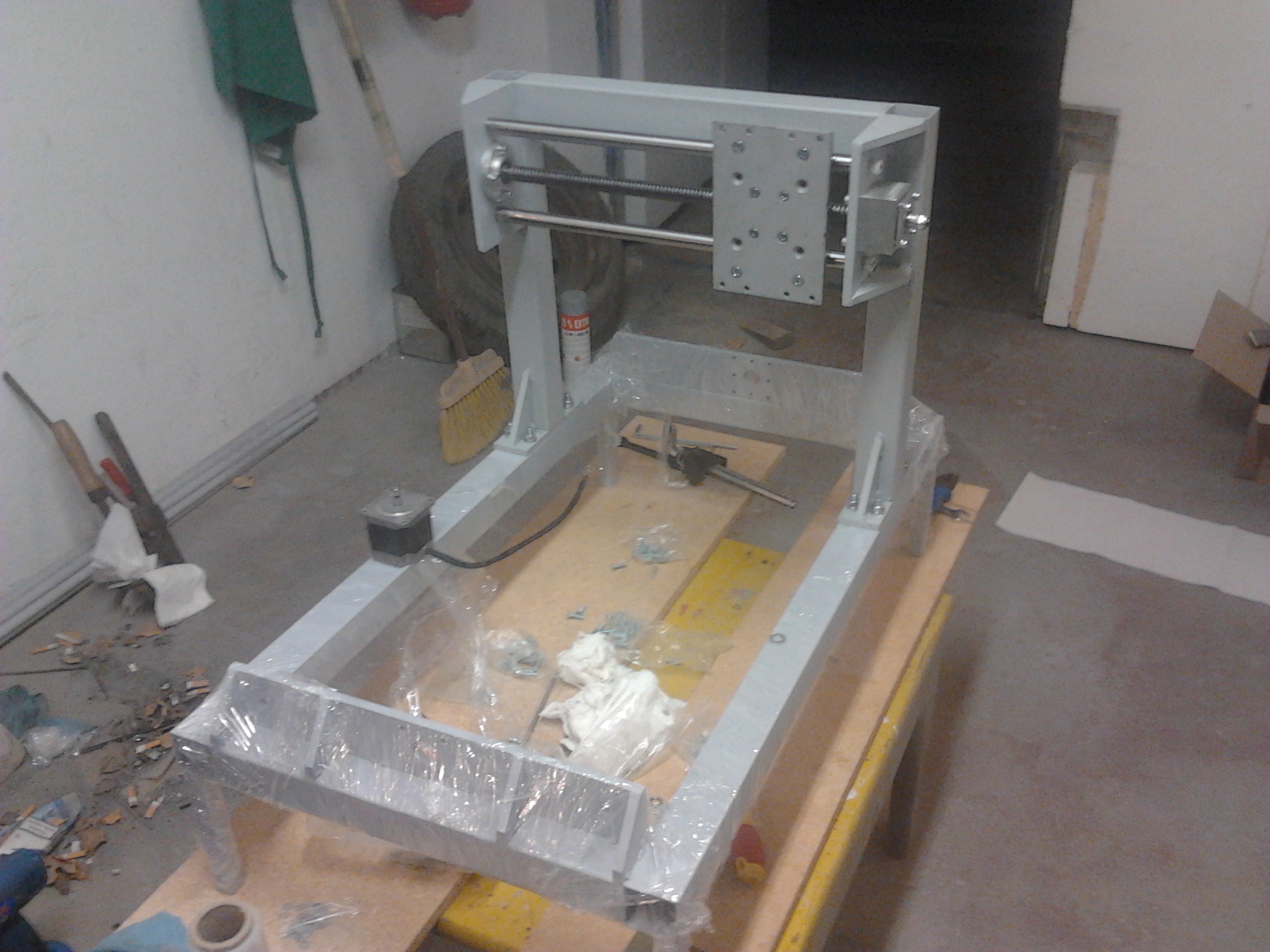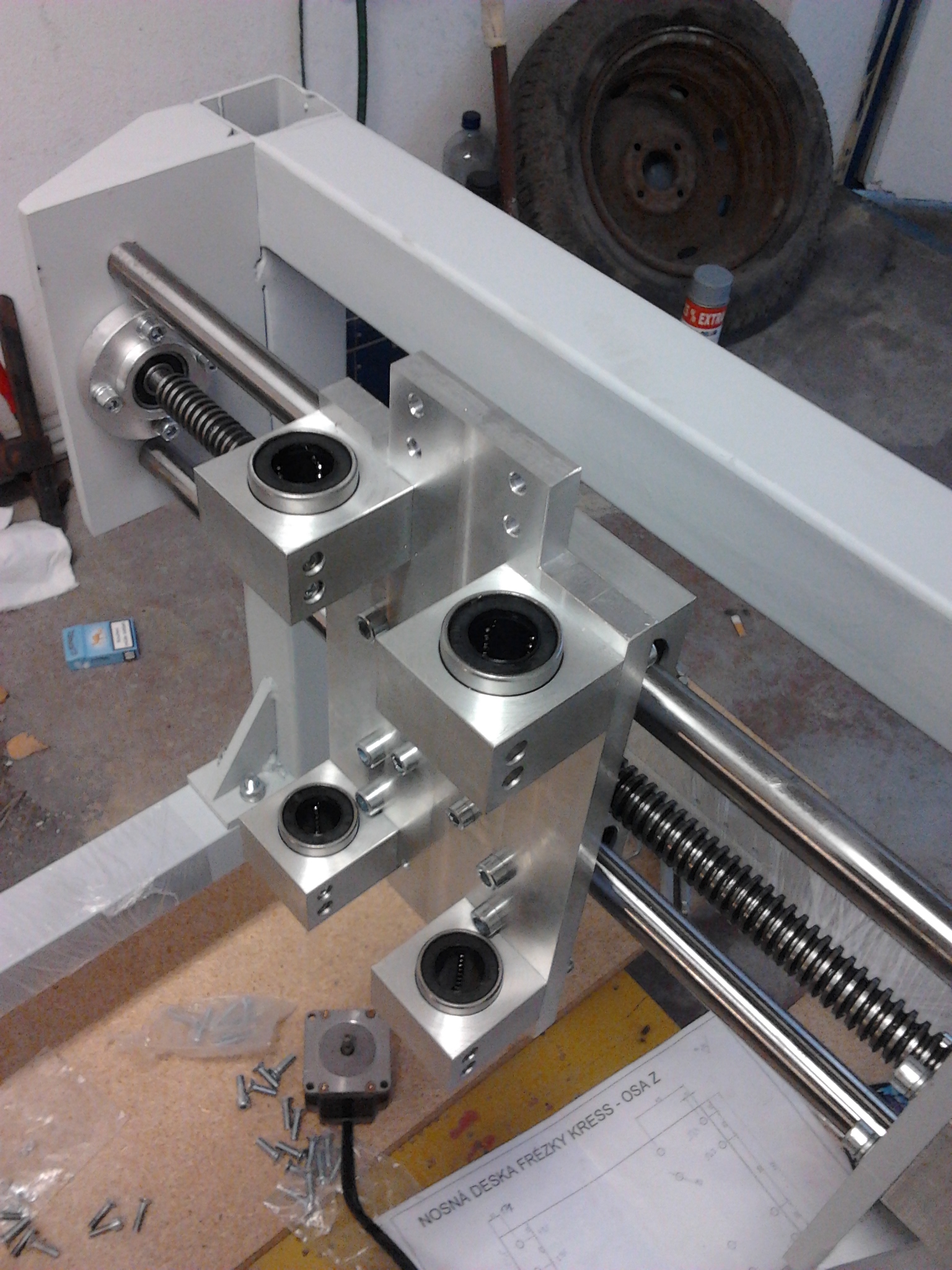 Zdravím všechny, po 2 letech, přemýšlení a nákresů jsem se dočkal první podoby nové mašinky. Délka 850mm šířka 470mm a výška 470mm. Celková váha okolo 40Kg ( zatím :-) ), " plánované " rozjezdy: Z 70mm ; X 350mm; Y 350mm. Motory 2x 1.3Nm a 1x 1.5Nm. Očekávám od ní gravírování, práce se dřevem a plasty a na pokus i hliník :-D...Vřeteno plánuji ATAS 500W.....