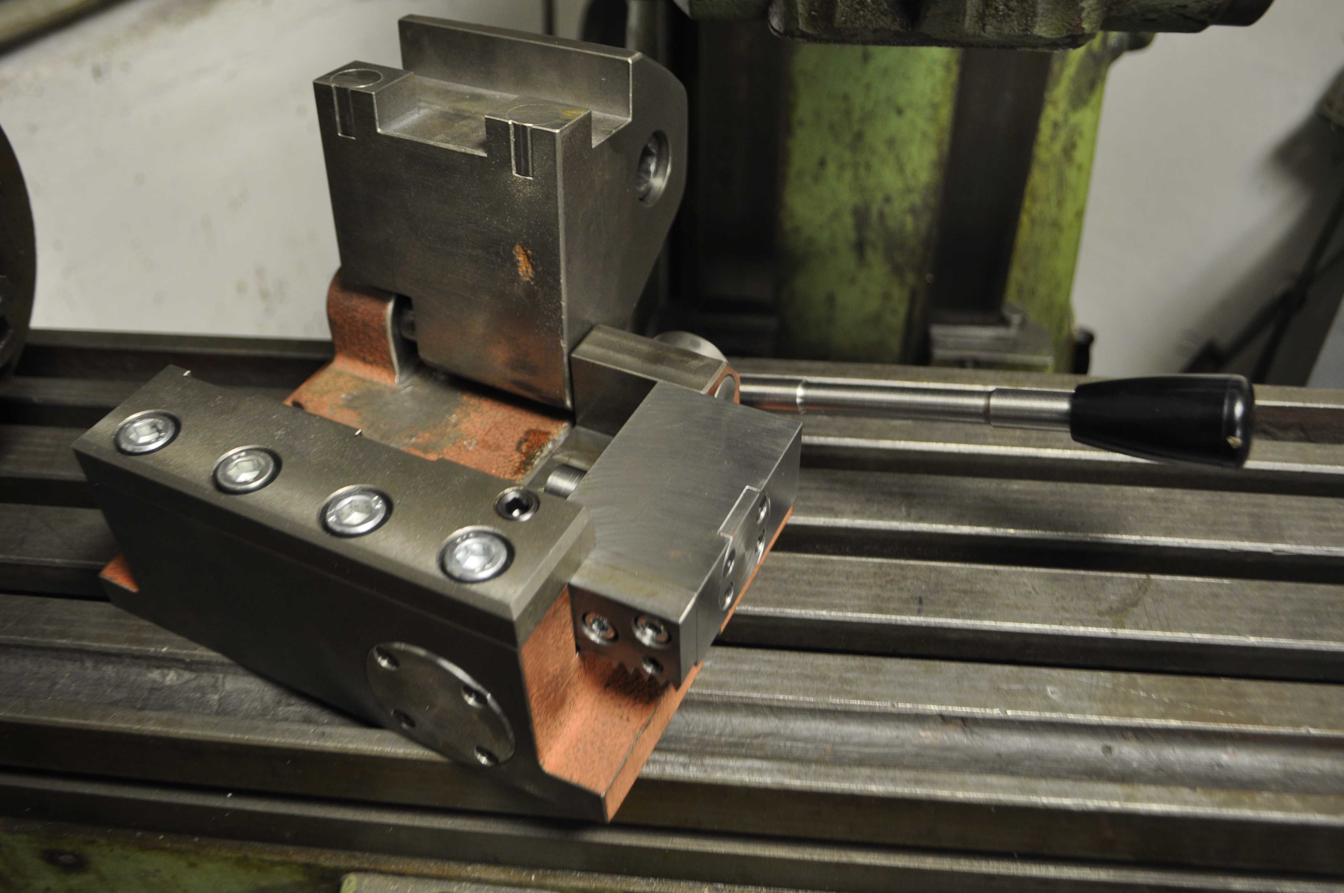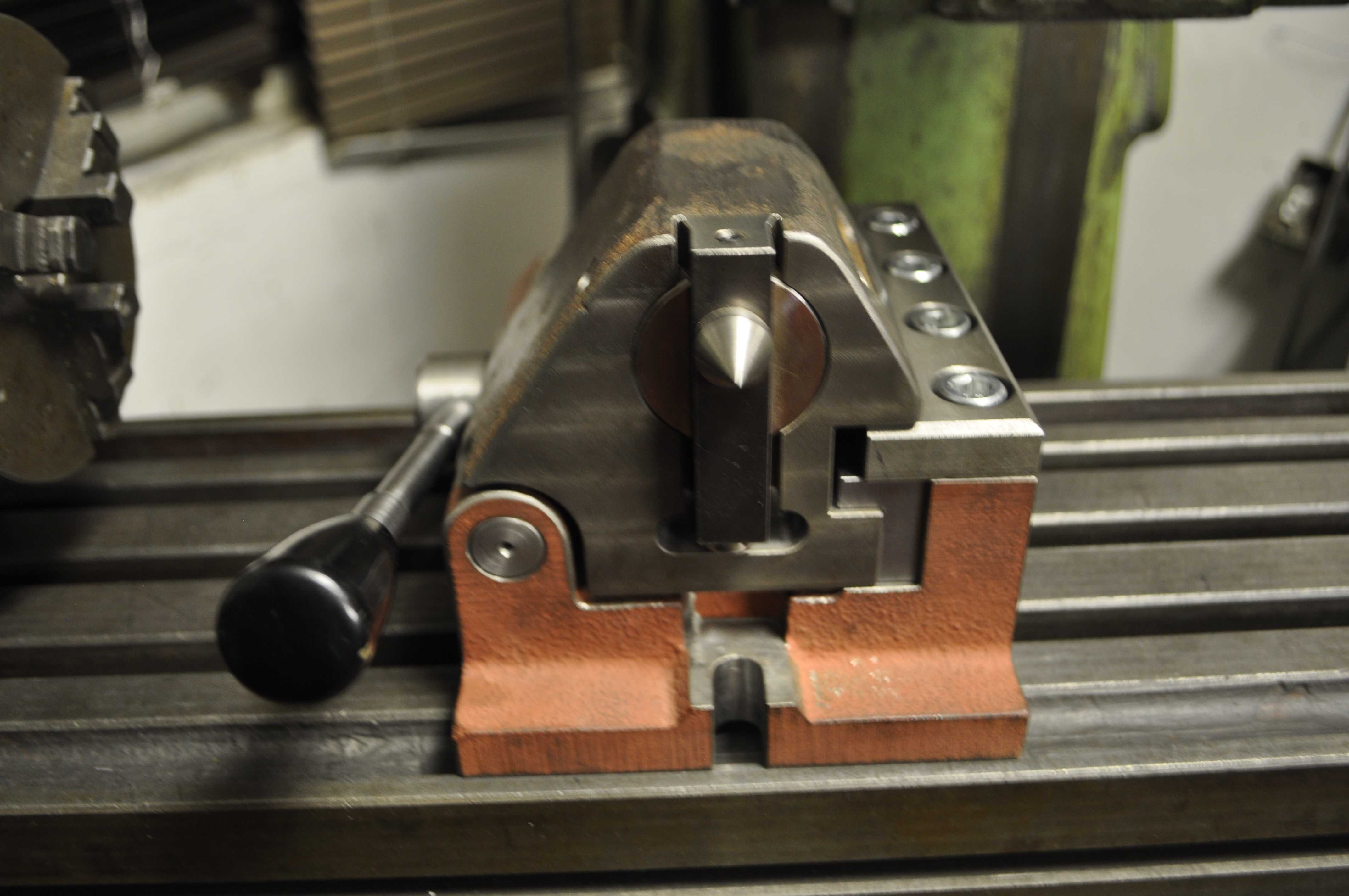 Tak jsem si konečně dodělal odklápěcí koník k děličce. Kdysi jsem jsem s ním pracoval a hned jsem si ho oblíbil. Oproti klasickému koníku má tu výhodu, že se dá odklopit a má velký prostor okolo středu hrotu pro měření nebo výměnu kusu. Základní tělo a posuvný segment je litinový odlitek, posuvné díly kalené a ostatní díly vyrobené z 15142. Do barvy půjde až na jaře, protože venku je už na to zima.