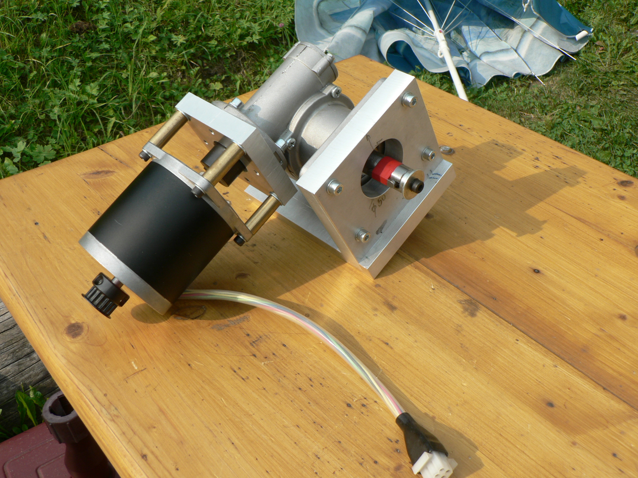 S odstupom času je 4.-ta os hotova(prepojenie priamo na prevodovku 20:1,Vexta 1,8°/step,2-faza),namontovana a takmer funckna.Takmer,pretoze vyfrezovany vysledok,nie je 100% rovnaky ako vystup z Aspire.Co rozmenene na drobne znamena zrkadlovo otocene pismo,prekryvajuce sa obrazce.Takze dalsie patranie po nastaveni Mach3,posuvu (Step per v motor tuning pre Mach3,narazil som na vypocet 2 000*20/360=111,co vsak este nie je vyskusane v praxi)....zda sa to byt este na dlhe lakte.