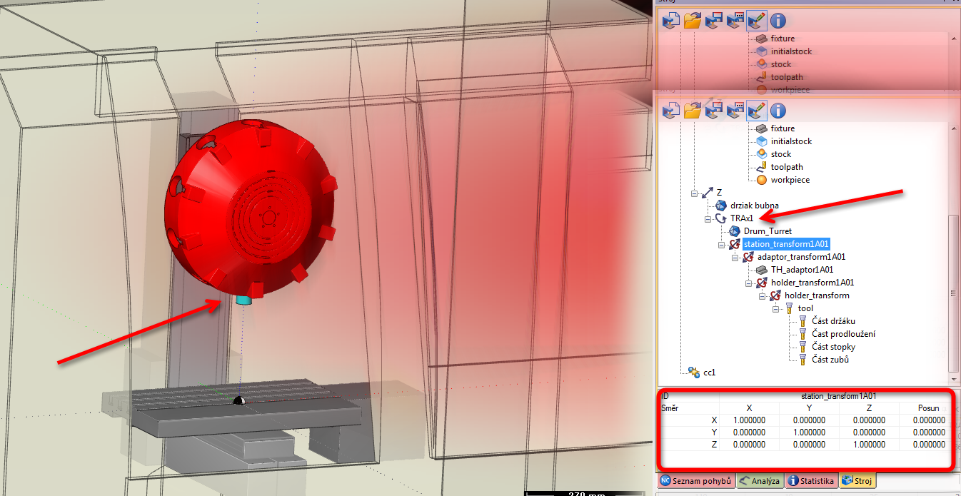 Na prave je vidiet "Station_transform" koordinacneho systemu ktoremu popravde okrem "Posuvu" vobec nerozumiem.. tie cisla akoby boli uhly no menit to nemozem. Ak sa pokusim to zmenit a prepisat niektore cislo tak mi napise chybu kt. je na dalsom screene. (mimochodom som to skusal pozmenit aj priamo v samotnom xml kode stroja no neuspesne)