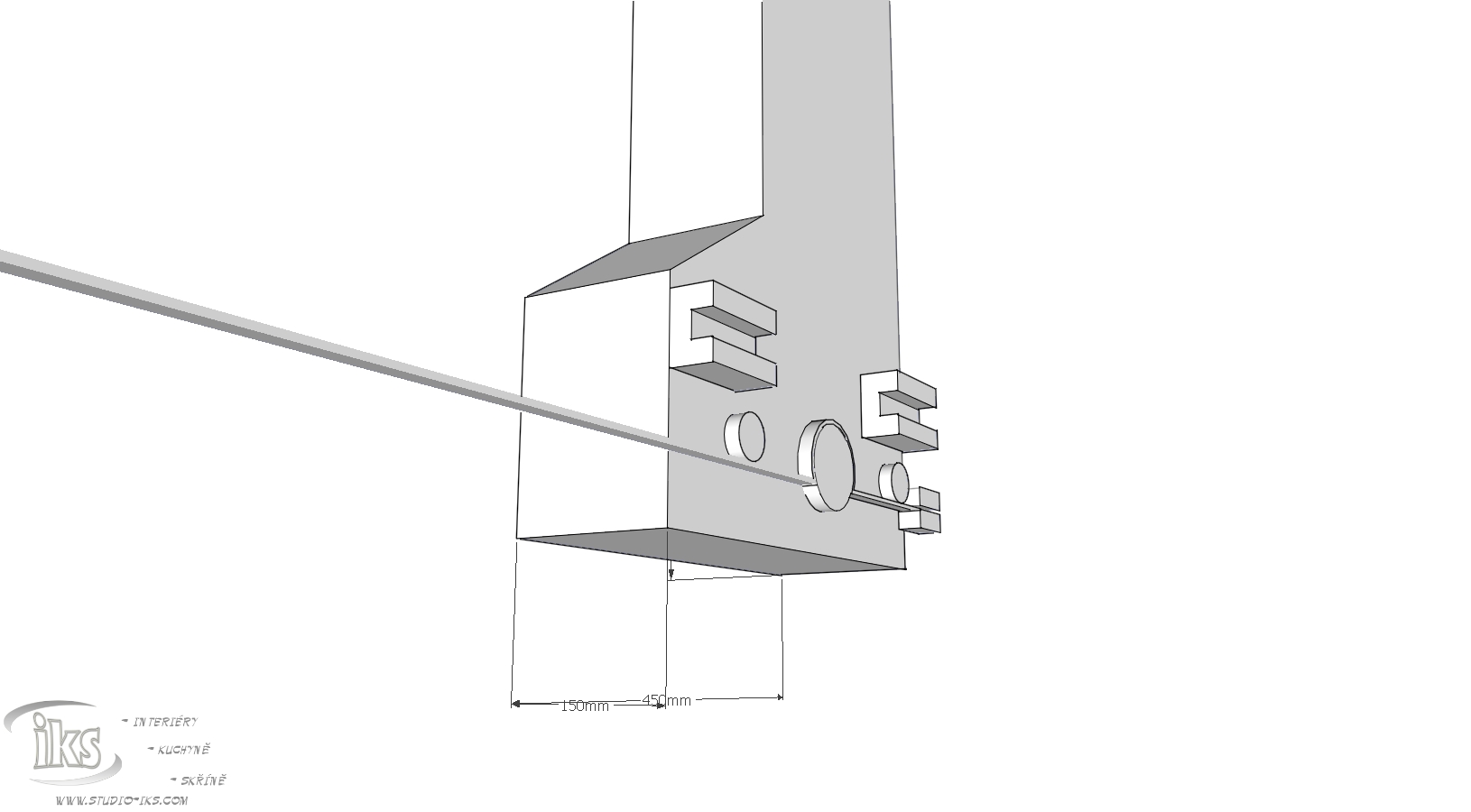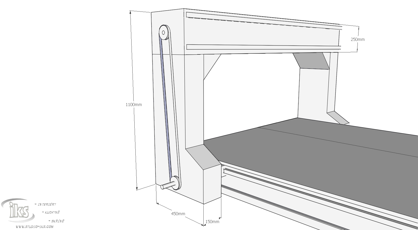 Mojí hrubou představu přikládám na skicách. Mašinka bude sloužit hlavně na velkoplošné vrtání boků skříní a semtam na frézování tvarových dílců z lamina, dýhy nebo masivu. Vřeteno bude pro začátek 2 kw horní fréza.