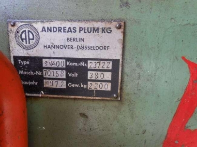 na vřeteníku bývají loga buď starší odlitá a nebo novější hranatá plechová (origo fotku zachovalého štítku jsem neobjevil): A aby toho nebylo málo, tak byly ještě na export do německa (dovozce Andreas Plum): Nemá někdo dokumentaci k tomuto soustruhu SN400 (v jakémkoli jazyce)?